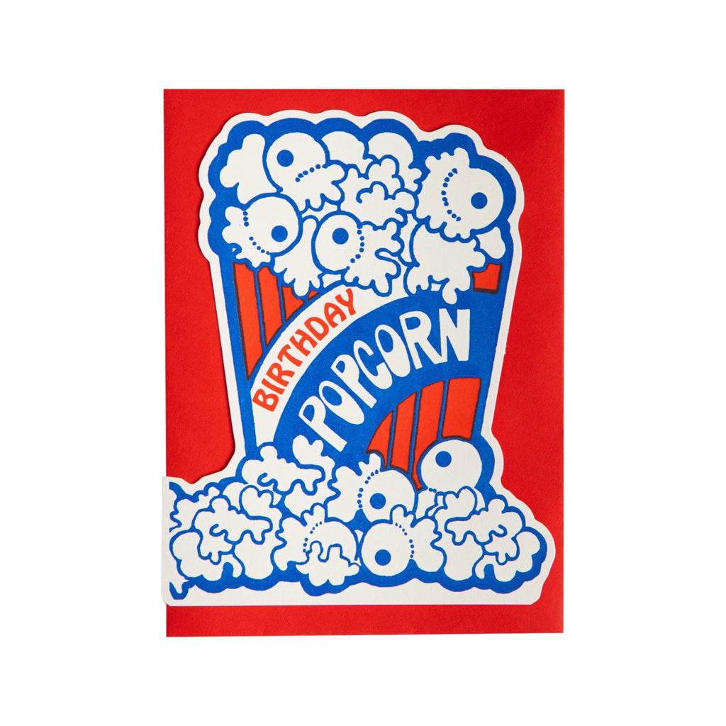 Expertly printed by Archivist this card features a blue and red popcorn bucket, overflowing with popcorn and the words 'Birthday Popcorn.' Brighten up someone's day with this delightful card that will be sure to stay out on display long after its received. This card has been printed on card that is FSC accredited booth the card and the wrapping are 100% compostable. Blank inside for your own special message and comes with a coordinating envelope. Sized 17.8 cm x 12.7 cm letter press printed in the UK.
