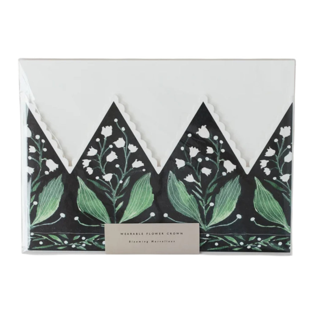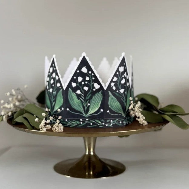 Great to send but even better to wear, this floral party hat crown card makes a truly unique way to send a special message to a loved one or friend. Adjustable for adults or children, card comes with a crisp white envelope and plenty of space to write a cheery message. Printed in England. Katie Housley is a based in Hove, where she creates her thoughtful paper goods from her studio by the sea.