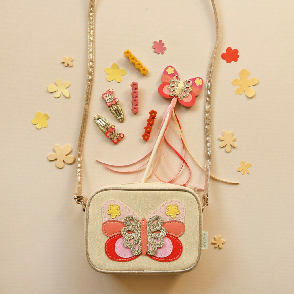 This beautiful set of 2 hair clips by Rockahula is just what you need to updo your hair in a super cute way. Featuring two shimmering butterflies secured to a gold glitter ribbon wrapped snap clip. The perfect accessory for a fun look! Please note this product is not suitable for children under 36 months due to small parts.
