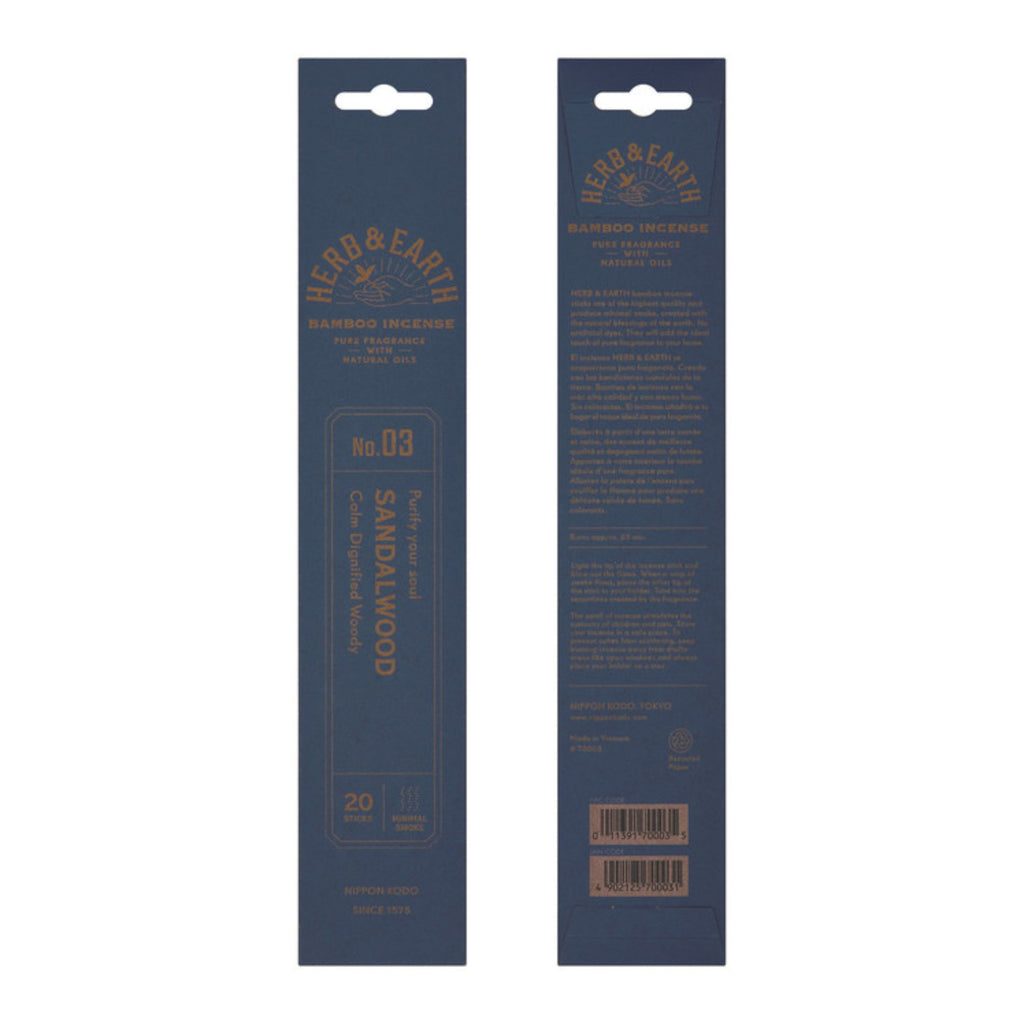 Herb & Earth Bamboo Incense sticks are of the highest quality and produce minimal smoke, created with the natural blessings of the earth. With no artificial dyes, they add an ideal touch of pure fragrance to your home. The classic scent of Sandalwood is characterised by a calm, dignified and woody feeling that resonates in the heart. Each pack contains 20 sticks that burn for approximately 30 minutes and measure 25cm in length. The components are from Japan, and manufacturer in Vietnam.