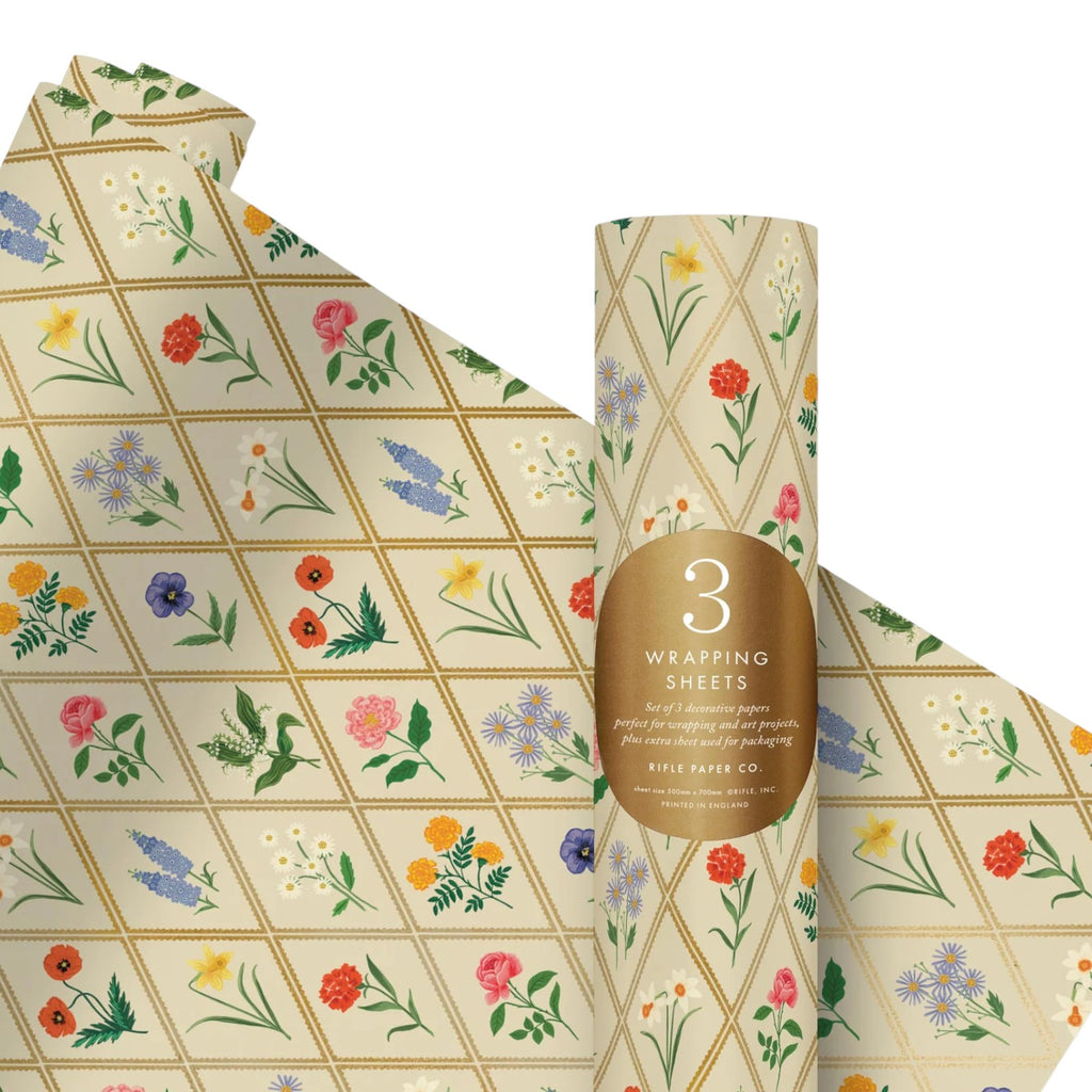 This beautifully illustrated wrapping paper by Rifle Paper Co. comes in a set of three convenient pre-cut sheets making them perfect for gift wrapping, drawer liners of your next craft project. Printed on uncoated text weight paper in the UK. Each sheet measures 50 x 70 cm, pack contains 3 sheets and comes wrapped in a 4th sheet.
