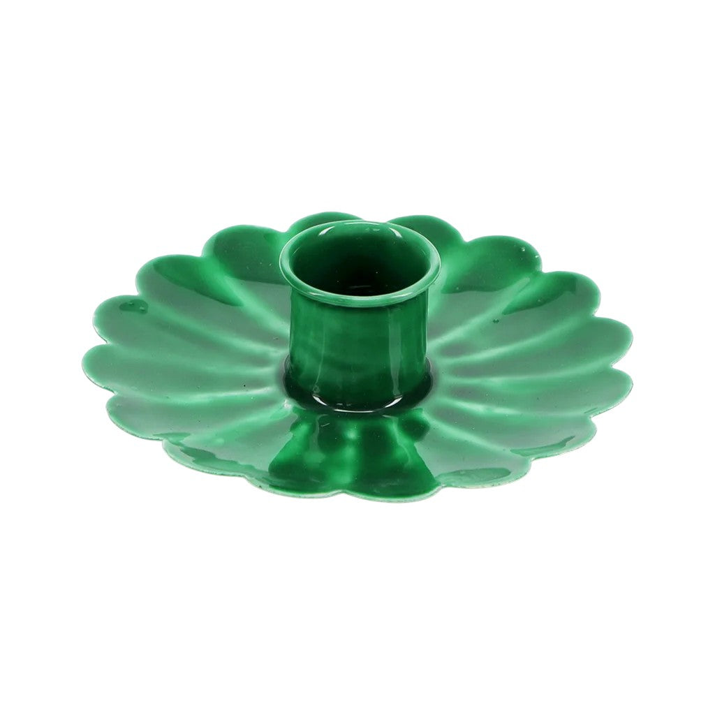 A beautifully shaped flower candle holder, created from a forest green enameled metal that will add a touch of colour to your dinning table, mantle piece or room decor. The candle holders unique flower shaped design is perfect for catching any dripping candle wax making sure there wont be any spillage onto your furniture. Suitable for candles with a 2 cm dimeter. Holder comes with foam pads to the bottom to prevent any scratches to surfaces and measures 9.3 x 9.3 x 2.5cm. Made from enameled cast iron.