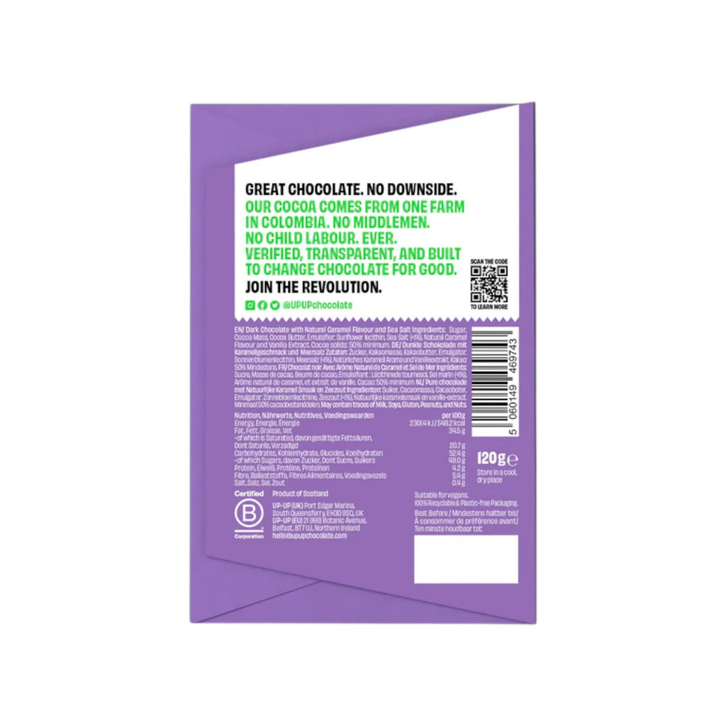 This dark espresso chocolate bar by Up Up is created from Single Estate 50% cacao content made with fine flavour cocoa beans. The beans used to make this bar come from a single farm called "El Rosario" located in the Necocli region on the north-eastern coast of Colombia. Up Up chocolate is proudly known as the first producer in the world to be certified by slavefreetrade.org meaning that this wonderful bar can be enjoyed with out any of the downsides. Bar Weighs 130 grams. Sugar, cocoa mass, cocoa butter, emulsifier: sunflower lecithin, natural coffee flavour, and vanilla extract. Created in Scotland.