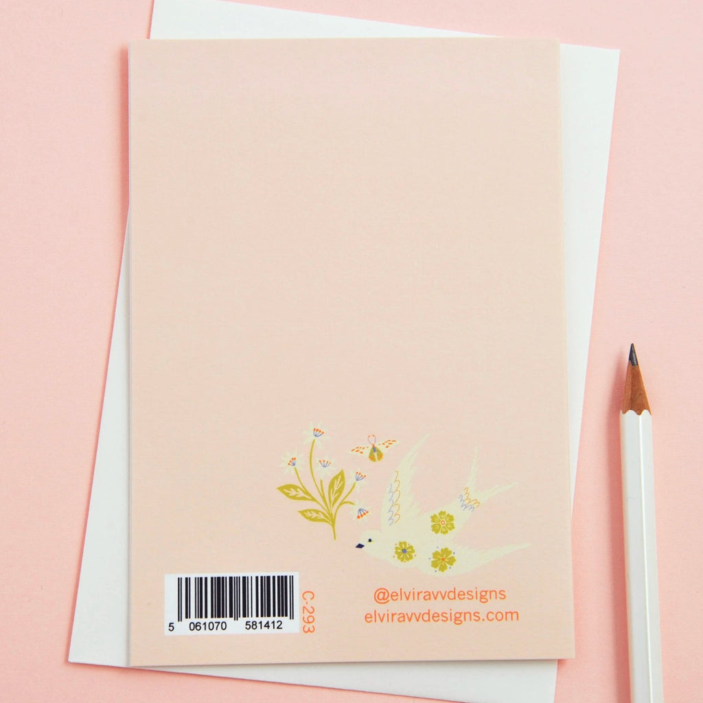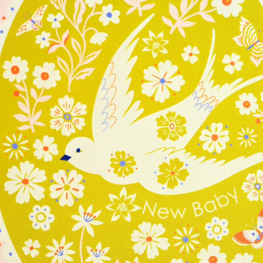 Welcome a new arrival with this delightful new baby card in soft yellow, adorned with floral details and multicoloured dots. Its unique design makes it a keepsake to treasure, perfect for displaying on a mantelpiece or nursery shelf. More than just a card, it’s a charming little gift in itself. Printed on premium FSC®‑certified card and left blank inside, it offers space for your own heartfelt message. Includes envelope. Designed & printed in the UK.