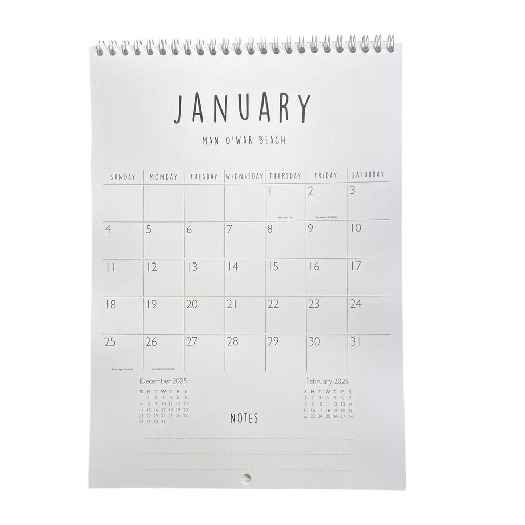 The Wings And Wild 2026 Calendar by Bea Baranowska features 12 beautiful illustrations. Each page reveals a stunning image of Dorset landscapes and birds. Each page contains enough space to write all you important dates and appointments, with the previous month and the next month ahead helping you to stay organised as well as all major public holidays for the UK, Ireland and the USA and an area for writing any extra notes. Pages are smudge free, so you can confidently scroll away with out any mess. Spiral bound with hanging hole measuring 6 mm for easy hanging. Calendar measures A4 21 x 29.7 cm when closed, when open the full calendar is double paged and measures 59.4 cm in length when hung. Printed onto 250gsm card that has a soft matt finish. Created by the very talented illustrator Bea Baranowska in her countryside studio based in Dorset.