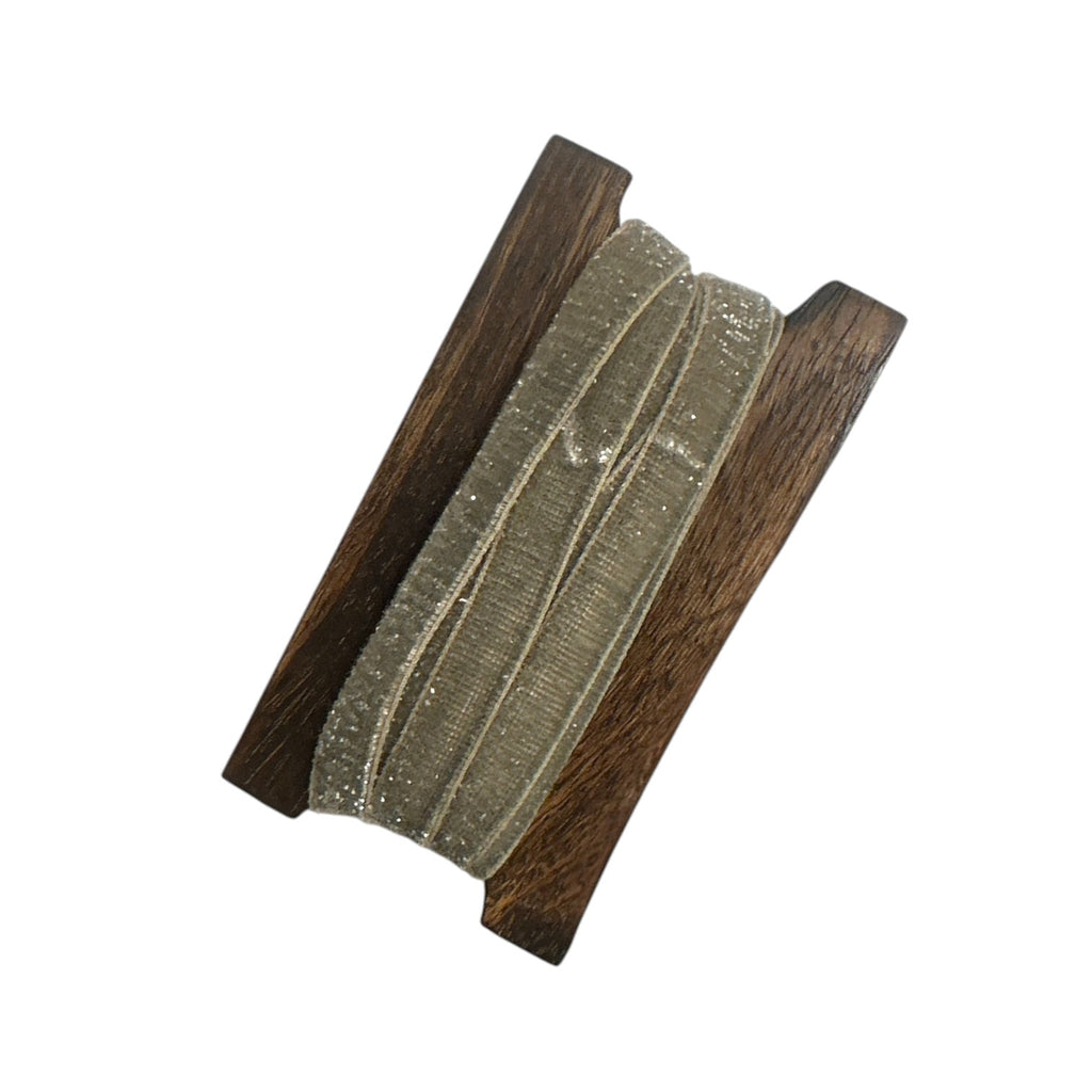 Ideal for wrapping a special gift or for crafting this beautiful velvet ribbon comes wound onto a wooden biscuit holder that keeps it neat and tidy ready for when you need it. Measuring 10mm in width and 3 meters in length.