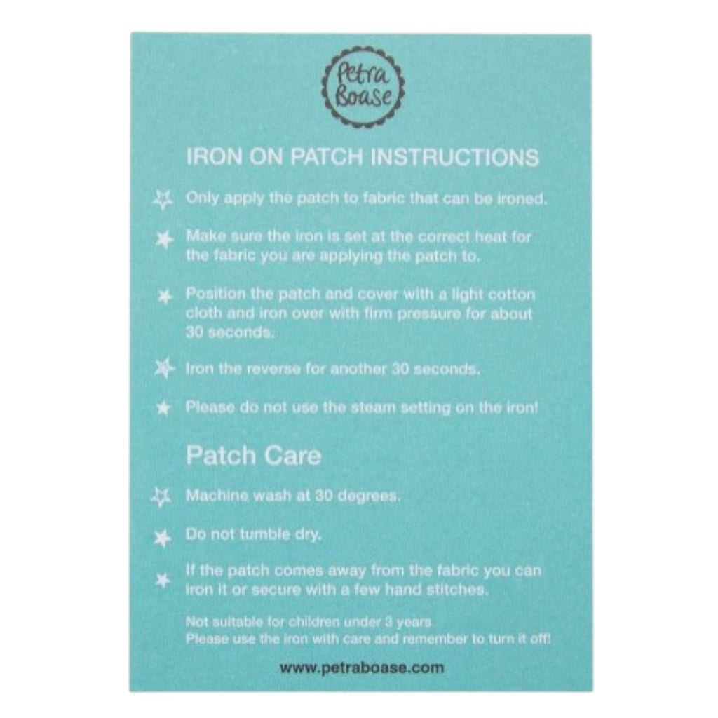 This wonderful iron on patch by Petra Boase makes a great way to personalise any accessory or item of clothing. Created from brightly coloured embroidery threads, each patch is simple to apply and makes a great way to add charm and colour to an item or mend a hole. Ideal for denim jackets and jeans, backpacks or purses, these patches make a great gift for any budding fashionista or crafter. Full in instructions on how to apply patch the patch can be found on the reverse of the packet. Patch size 5 cm x 8 cm, please note this item is not suitable for children under the age of 3.
