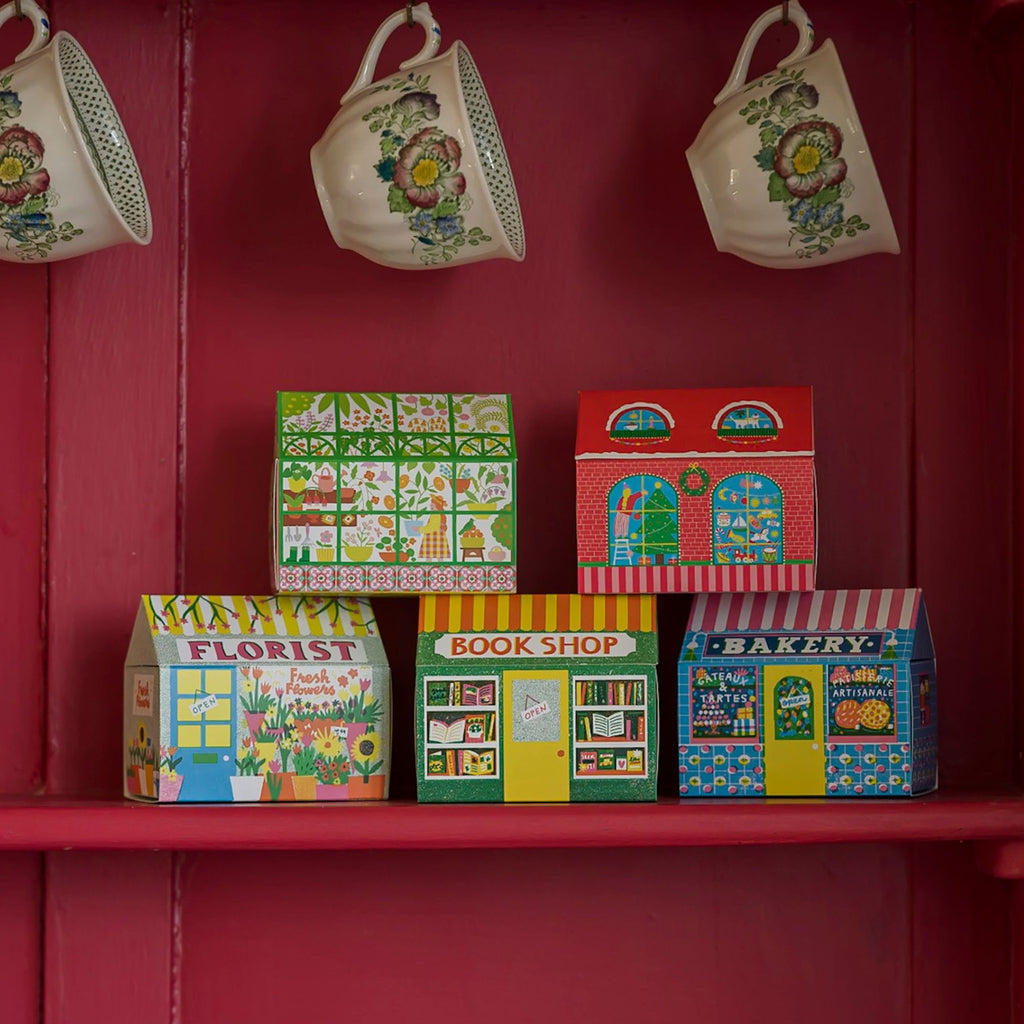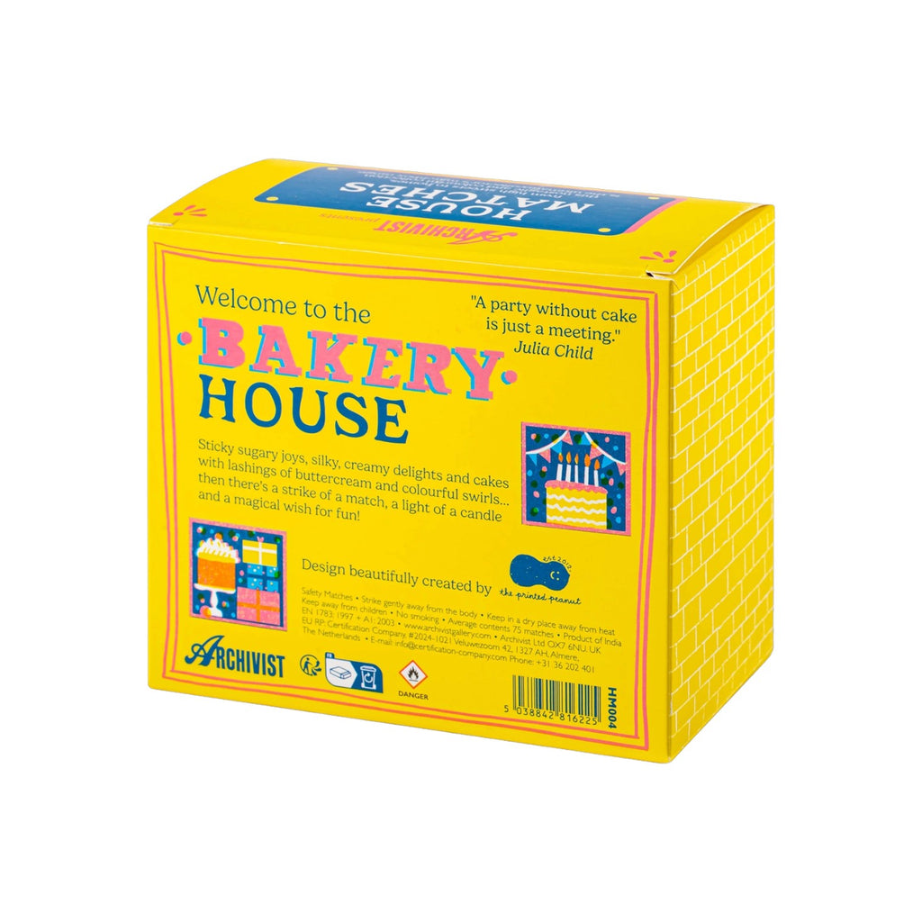 This beautifully designed house shaped matchbox features the illustration of a bright blue bakery with windows full of delicious looking treats. From high streets to homes, this nostalgic and colourful collection of House Matches is catnip for matchbox collectors. Both decorative and practical, they’re perfect perched on a kitchen shelf, bathroom ledge, or beside your favourite candle — a little everyday magic, ready to strike. Contains 75 matches, each measuring 10cm long, natural match sticks with pink, blue and white tips. These matches are made from natural product and may contain inherent structural flaws. Whilst time is taken to test the matches, cannot reasonably test every single one, so strike the match gently (easy does it!) and away from you, over non-combustible surfaces. Made in India and Printed on FSC certified board.