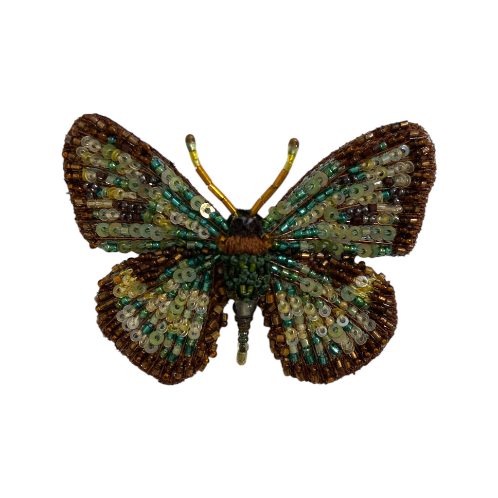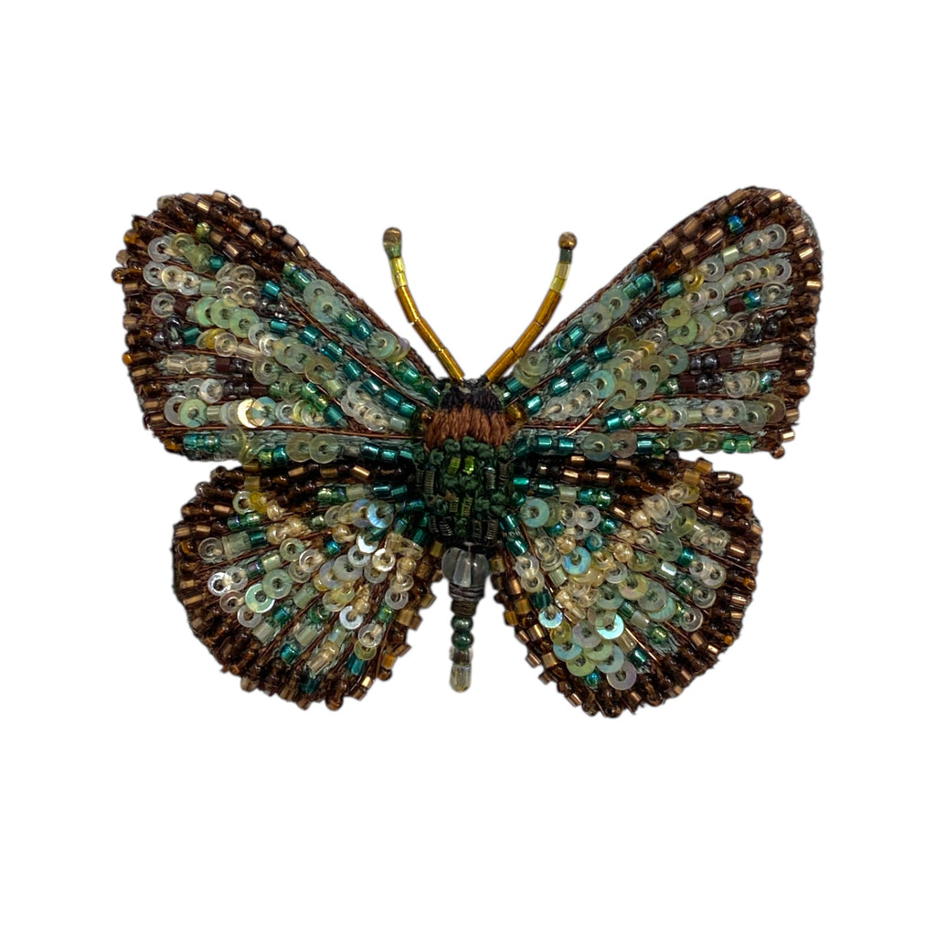 Exquisitely made this highly deleted brooch pin features and array of hand sewn beads, sequins and hand embroidery. Created by artisans for Trovelore each piece has been hand embellished onto a cotton and felt backing and fastens by a sliver metal lock pin for a secure fit. Pin measures 4.5 x 6 cm and will arrive gift boxed. Please note that there might be a very slight variation to the image shown, this is due to the handmade process of each piece.
