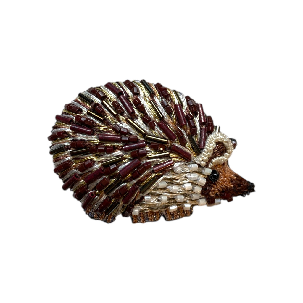 Exquisitely made this highly deleted brooch pin features and array of hand sewn beads, sequins and hand embroidery. Created by artisans for Trovelore each piece has been hand embellished onto a cotton and felt backing and fastens by a sliver metal lock pin for a secure fit. Pin measures 3 x 4.5 cm and will arrive gift boxed. Please note that there might be a very slight variation to the image shown, this is due to the handmade process of each piece.