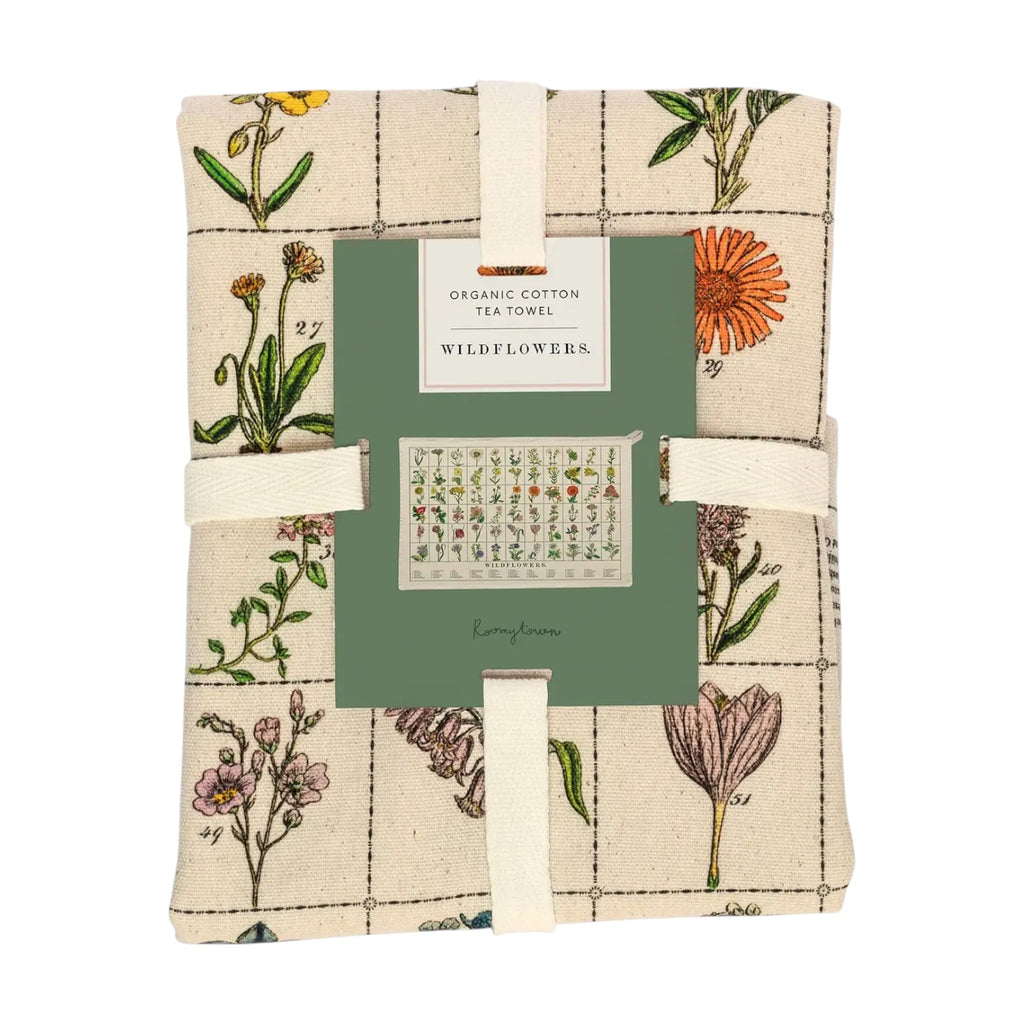 This 100% organic cotton tea towel features intricate illustrations of wildflowers originally published in a book by John E. Sowerby in 1902. The antique book was described as a volume of reference for the field botanist, the country resident or the summer rambler to identify each plant. Roomytown's design team in Bath, UK have hand picked the most captivating illustrations from this ancient gem to create this one of a kind tea towel design. Machine washable for everyday use in your kitchen, complete with hanging loop. Comes neatly folded and packaged with a fabric ribbon making it an ideal gift. Product height measures 71cm and width 46cm.